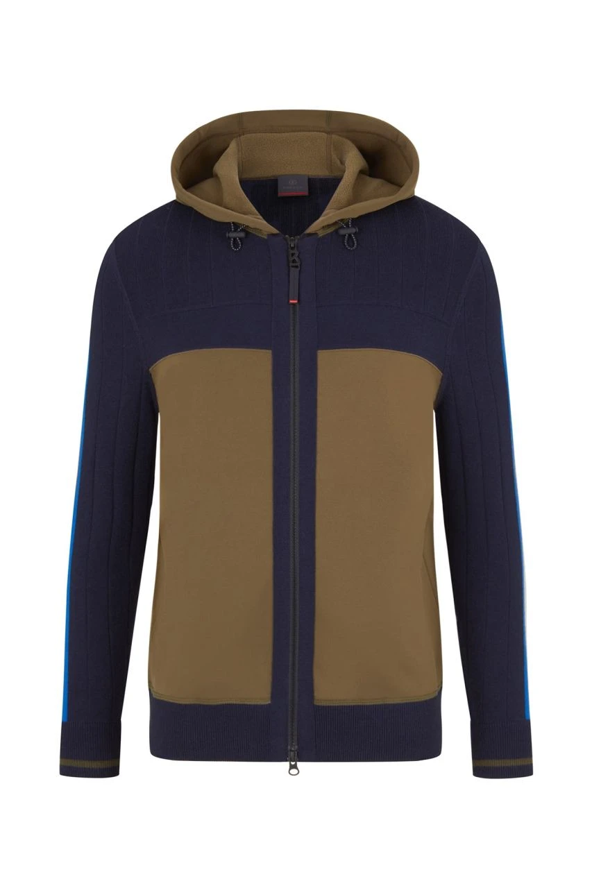 Die Trainingsjacke Loris von BOGNER FIRE + ICE besteht aus einem Mix aus stretchigem Funktionsmaterial und weichem Strick.
