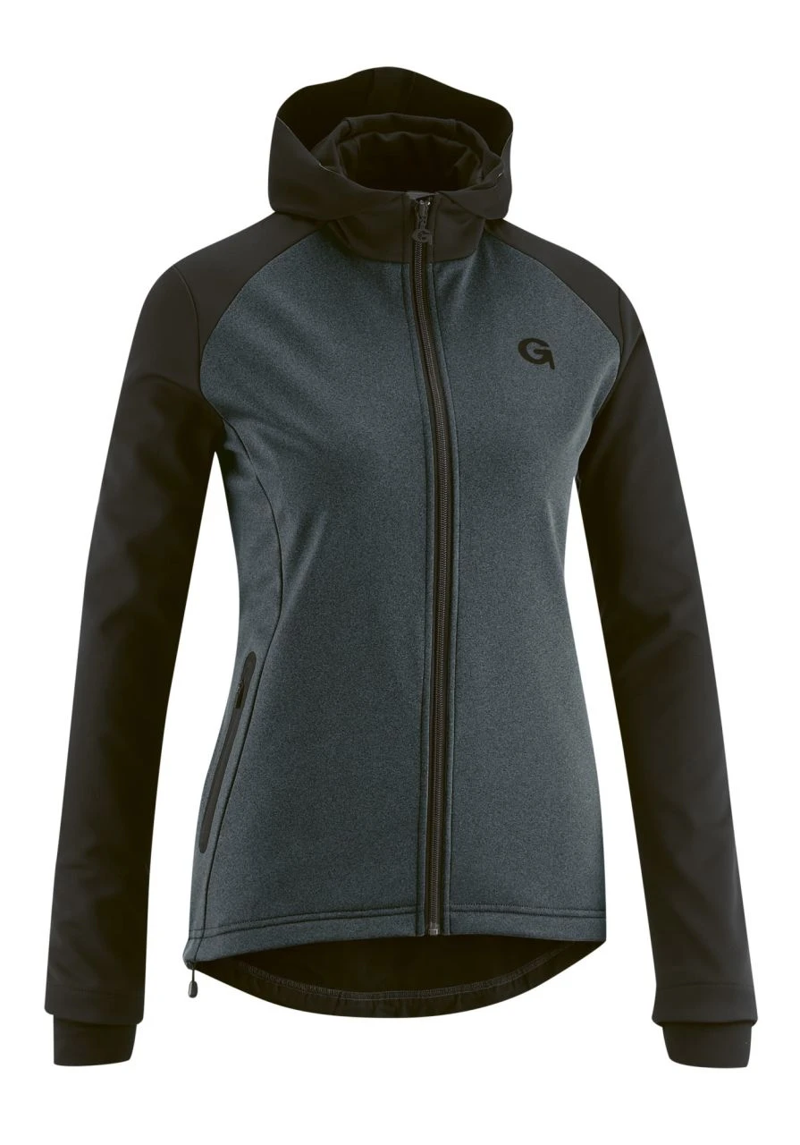 Der coole Trail Hoodie Taravo von GONSO für Damen aus leichtem G-Shell und atmungsaktivem Thermofleece bietet perfektes Körperklima in der Übergangszeit auf dem Bike.
