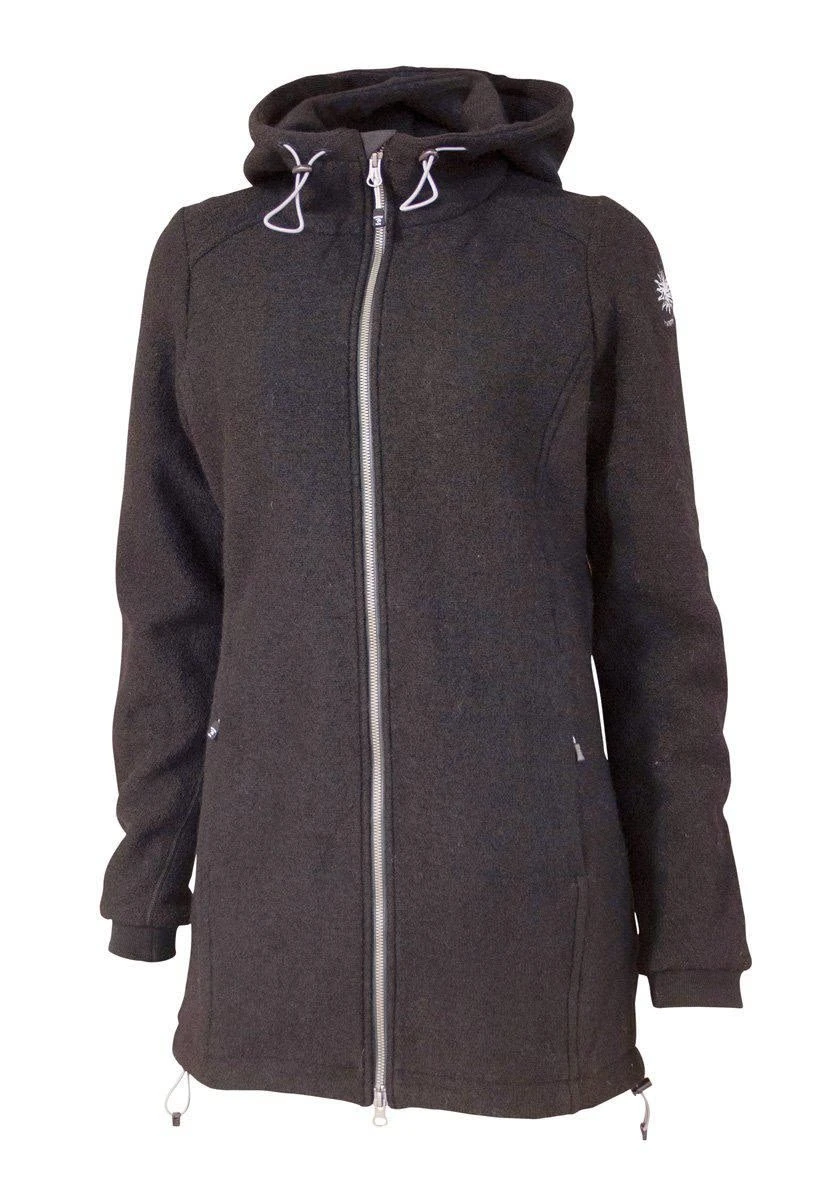 Der Juno Coat WB von IVANHOE OF SWEDEN ist ein Windbreaker-Mantel, der aus 100% Wolle gestrickt und mit einem hochfunktionellen Futter aus recycelten PET-Flaschen ausgestattet ist.