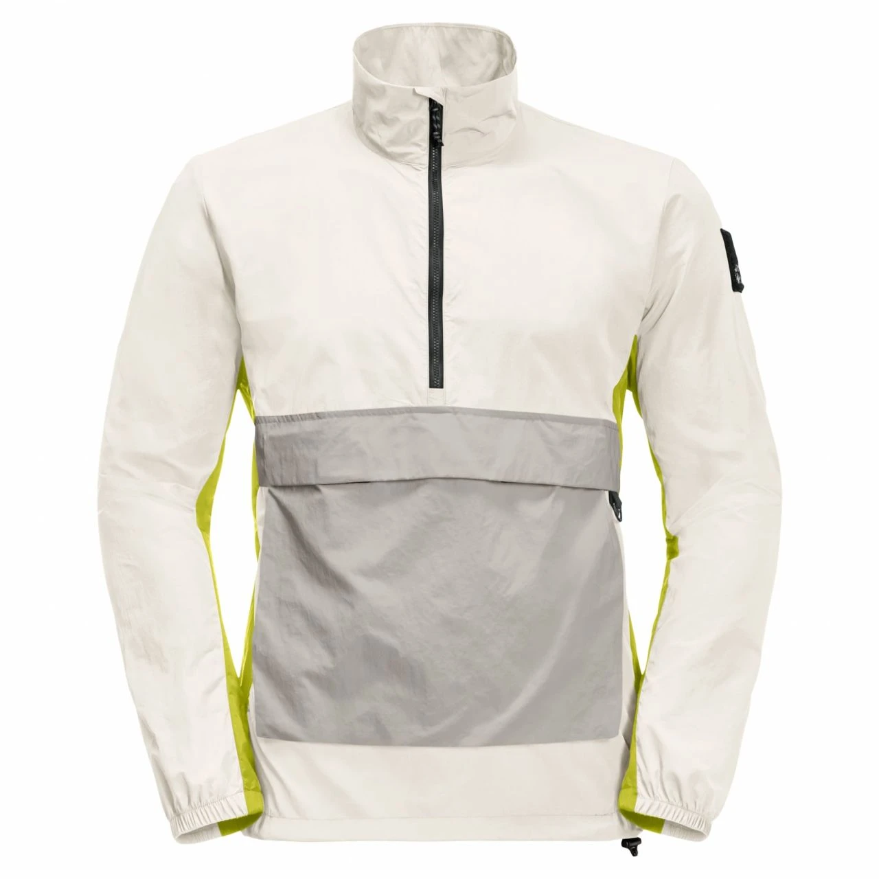 Die Windjacke wurde aus einem besonders robusten und dennoch leichten Material gemacht, das auch leichte Schauer einfach abperlen lässt. In den geräumigen Vordertaschen bekommst du deine Wertsachen problemlos unter.