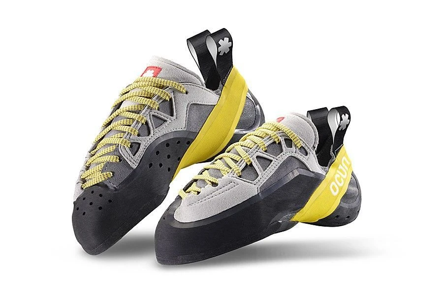 Der Kletterschuh Diamond von OCUN ist ein stark asymmetrischer, sehr gekrümmter Schuh, ausgelegt für maximale Leistung. Er bietet sicheren Halt auf kleinen Tritten, Leisten und Löchern. In Überhängen hilft er bei den schwierigsten Schritten. Die asymmetrische Schnürung sorgt für perfekten Sitz des Fußes im Schuh und für eine progressive Kraftausrichtung und -übertragung in die Spitze.