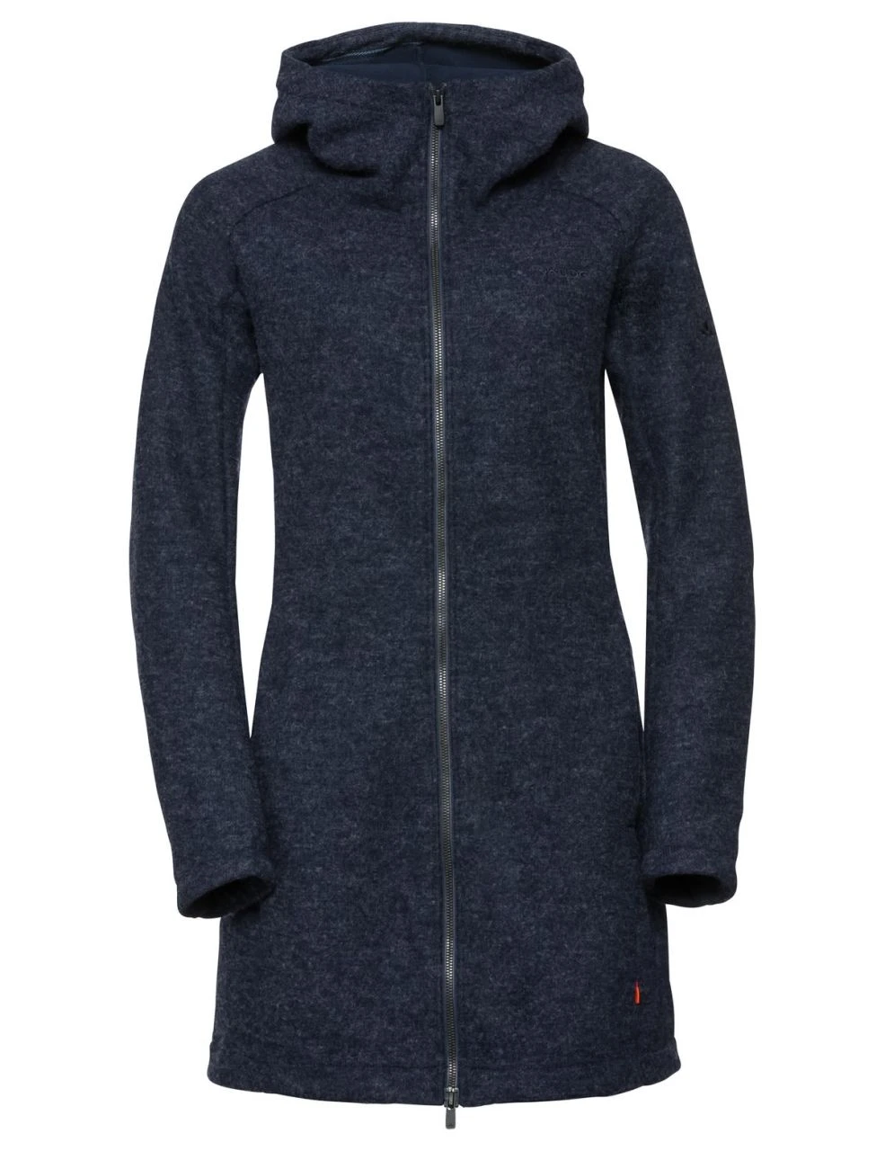 Der schicke und pflegeleichte Wollmix-Mantel Women’s Tinshan Coat III von VAUDE mit weichem Fleece-Innenfutter ist optimal für die Übergangszeit.